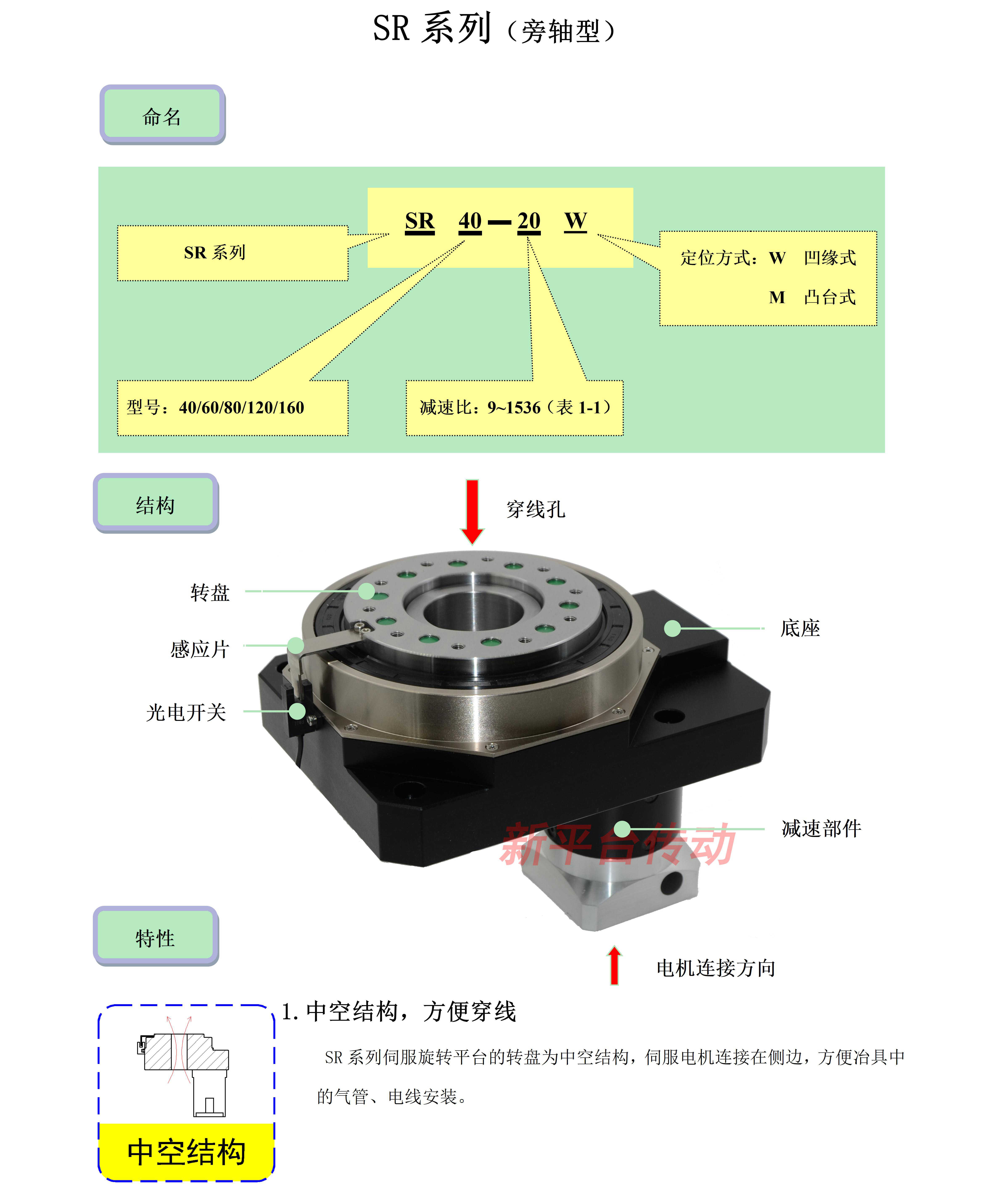 深圳市新平台传动设备有限公司是目前国内专业研发、生产、销售精密伺服旋转工作台的企业。所生产的伺服旋转平台以超重载、高旋转精度,低侧隙为特点,其产品类别包括同轴型,旁轴型,直角型三种结构形式,主要适用于机械手臂、数控转台、对位机构、军工雷达、自动化及测量和试验中要求精度高的领域。
